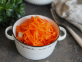 Натрите очищенную морковь и дайкон на специальной терке или нарежьте длинными тонкими брусочками.