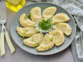 Скрепляем противоположные края мучной основы — формируем подобие полумесяца. В таком виде полуфабрикат можно заморозить, после затвердения переложить в удобные контейнеры, пакеты.