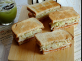 Повторите процесс с оставшейся половиной ингредиентов, сформировав таким же образом второй сэндвич. Оберните сэндвичи пищевой пленкой и поместите в холодильник на 30 минут.