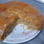 Пирог с фаршем и капустой на сметанном тесте готов.