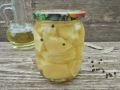 Дегустировать такую заготовку я рекомендую не ранее, чем через месяц хранения, чтобы патиссоны успели хорошенько настояться. Закуска получается острой, очень пикантной, так как патиссоны, нарезанные брусочками (ну или кубиками), мы перемешаем с полуколечками жгучего перчика и обязательно добавим чеснок, все зальем маринадом и законсервируем.