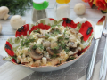 Поставьте салат «Виноградная гроздь» с курицей и грибами в холодильник на пару часов пропитаться.