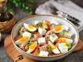 Готовится он за считанные минуты при наличии в холодильнике необходимых ингредиентов. Куриные яйца желательно отварить заранее и остудить, их можно заменить перепелиными яйцами.