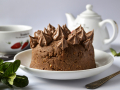 Формовочное кольцо внутри оберните ацетатной или пищевой плёнкой. Выложите 2/3 шоколадной крошки (или чуть больше) в формовочное кольцо и утрамбуйте его рюмкой (ложкой), формируя при этом бортики.