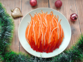 Между ингредиентами также выложите майонез. Если это сделать с помощью кулинарного мешка с насадкой, то блюдо будет выглядеть красивее. Салат «Русские горки» готов. Поперчите по вкусу и перемешайте.