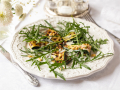 Кабачки сполосните, срежьте хвостики и нарежьте тонкими пластинами. Посолите и поперчите по вкусу.