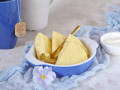 После выпечки аккуратно подденьте края пирога, затем положите на форму тарелку и переверните пирог, чтобы он оказался на блюде. Нарезайте банановый флан на порционные кусочки и можно подавать к столу!