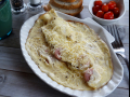 Если хотите сделать яичный блин более сытным и вкусным, добавьте натертый сыр и нарезанную тонкой соломкой полукопченую колбасу.