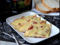 Раскаленную сковороду сбрызните растительным маслом. Вылейте подготовленный омлет и распределите его по всей сковороде. Сковороду накройте крышкой и готовьте омлет на тихом огне 5-6 минут с одной стороны и несколько минут со второй стороны.