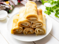 Венчиком тщательно перемешайте муку с молоком, чтобы получилось однородное, без комочков, тесто. Влейте кипяток, сразу же перемешайте тесто. Количество кипятка приблизительное. Оно будет зависеть от влажности муки, категории яиц. Влейте растительное масло, перемешайте, оставьте тесто на кухонном столе на 10-15 минут.