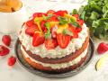 Уложите оставшуюся клубнику. Уберите меренговый торт с клубникой в холодильник на 1-2 часа для стабилизации.