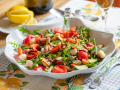 Добавьте заправку в миску ко всем ингредиентам и аккуратно все перемешайте.