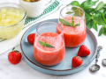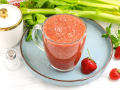 В сезон созревания красочных ягод обязательно побалуйте себя полезным смузи из клубники и шпината. Готовится он на основе кефира любой жирности с добавлением подсластителя, так как сам по себе кефир кисловат на вкус. Можно всыпать в смузи сахарный песок, добавить цветочный мед, если у вас нет на него аллергии. Также вкусен напиток и с сахарозаменителями, например сиропом стевии.
