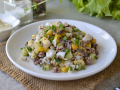 Продукты для приготовления салата из копченой скумбрии с рисом - перед вами!