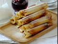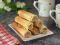 Гриль разогреть, положить на нижнюю панель лист пергамента, выложить на расстоянии друг от друга по 1 ст.л. теста, накрыть вторым листом пергамента и закрыть верхнюю панель гриля. Готовить сырные вафли на гриле до золотистого цвета, после чего снять их с пергамента и свернуть в трубочку. Таким образом приготовить все вафли.