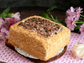 Выпекаем коржи в разогретой до 180 градусов духовке минут 5-7, ориентируйтесь на мощность своей духовки и цвет коржа, он должен стать слегка коричневым. Переверните бумагу с коржом, аккуратно отделите корж от пергамента, отложите, пусть остынет, только не складывайте готовые коржи друг на друга - могут слипнуться. Таким образом выпекаем все коржи, у меня получилось ровно 6 штук.