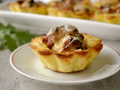 Тарталетки наполните готовой начинкой и подавайте к столу. Для украшения тарталеток с ветчиной, грибами и сыром можно взять свежую зелень. Приятного аппетита!