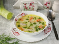 Проварите суп ещё 2-3 минуты, постоянно помешивая. Сыр должен раствориться в супе, а мука - загустить суп.