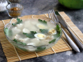Параллельно сварите вкрутую пару яиц. Вымойте яйца, залейте их холодной водой и варите от момента закипания 5 минут на тихом огне, а затем выключите плиту и яйца оставьте в кипятке ещё на 5 минут. После чего залейте яйца холодной водой и очистите.
