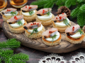Слабосоленого лосося нарезать на небольшие слайсы и уложить сверху на яичную подушку.
