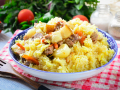 Готовый плов разложите по тарелкам и подавайте к столу. Приятного аппетита!