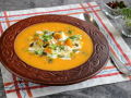 Тыквенный суп - самый нежный, ароматный осенний суп. Он прекрасно согревает и утоляет голод. Правда, какой бы прекрасной не была тыква, ее естественная сладость нравится далеко не всем. Перебить ее смогут помочь определенные овощи и различные дополнения. Сегодня предлагаю приготовить тыквенный суп со свежим имбирем и сливками.