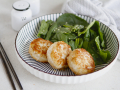 Котлетки переложить на тарелку. Для соуса соединить майонез, огурец, натертый на терке. С тертого огурца слить лишнюю жидкость. Добавить щепотку любой специи, например хмели-сунели.