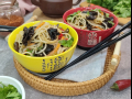 Выложите пасту с говядиной и грибами на тарелки и подайте к столу горячей. Дополните соусами, дипами и т.д.