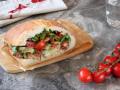 Накройте второй половинкой и подавайте чиабатту с ветчиной и сыром к столу. Сэндвич можно разрезать на 2-3 части.