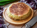 Очистите картофель или другой овощ, который планируете запекать. Промойте и нарежьте кубиками, слайсами и т.д. Перемешайте с солью и перцем, растительным маслом. Выложите на дно формы. Духовку заранее разогрейте до 170 градуов.