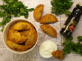 Слепите края лепешки, формируя пирожок. Так поступите со всем тестом и начинкой.
