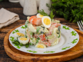 Сытный и нежный кето оливье готов. Существует множество других вариаций этого салата: с использованием креветок, слабосоленой рыбки, тунца, индейки и говядины.