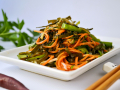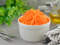 Натрите морковь на корейской тёрке, добавьте к ней спрессованный зубчик чеснока и немного соли. Перетрите всё руками, чтобы морковь пустила сок, а чеснок раскрыл свой аромат.