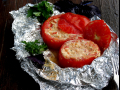 Возьмите необходимые ингредиенты для приготовления сыра сулугуни с помидорами в духовке.