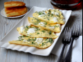 Готовый диетический белковый омлет аккуратно снимите со сковороды вместе с пергаментом, а затем отделите лопаточкой от пергамента, сложите вдвое и переложите на тарелку.