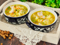 Вкусный и нежный сливочный суп с рисом и ветчиной готов.