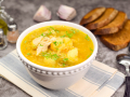 Соберите ингредиенты для приготовления сливочного супа с рисом.
