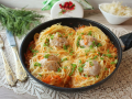 Накройте форму фольгой и поставьте фрикадельки с гнездами в духовку, разогретую до 180 градусов, на 20 минут.