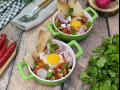 Яичница с брокколи и помидорами готова, подавайте незамедлительно к столу.