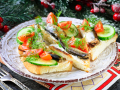 Маленькие веточки укропа выложить с двух сторон от шпрот.