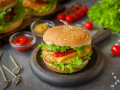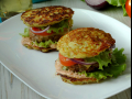 Булку для бургера разрежьте вдоль и пополам на две равных половинки.