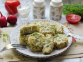 Я запекала в духовке при 210 градусах примерно 20 минут, режим - верхний гриль.