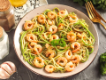 Соберите по списку все необходимые ингредиенты для приготовления пасты карбонара с морепродуктами.