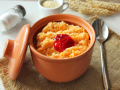 Выложить пшенную кашу с курагой из мультиварки в тарелку и подать к столу.