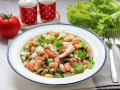 Разложите готовый салат с креветками по порционным креманкам и подавайте к столу. Приятного аппетита!