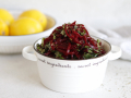 В оставшуюся натёртую свеклу добавляем 1-1,5 чайные ложки майонеза и перемешиваем.