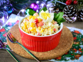 В салатник положите нарезанные продукты: яйца, огурцы, картофель, морковь и крабовые палочки.