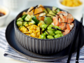 Креветки залейте кипящей водой и дайте постоять 10 минут. Затем промойте холодной водой. Очистите от панциря, головы и кишечной вены.