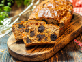 Вмешайте порцию тёртой моркови. Вяленый изюм промойте, ядра грецких орехов поломайте на крупные кусочки. Вмешайте эту начинку в кексовое морковное тесто.