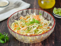 Остудите куриное мясо и нарежьте небольшими кубиками или разберите на волокна.